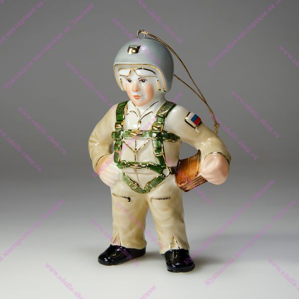 Новая елочная игрушка "Вертолетчик" изготовлена из глазурованного фарфора с ручной подглазурной и надглазурной росписью.