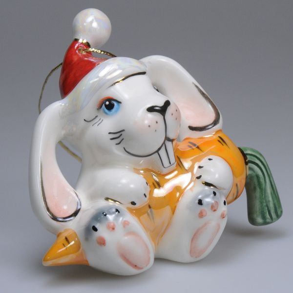 Новая фарфоровая ёлочная игрушка Зайчик с морковкой