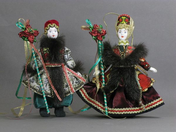 Куклы серии "Рождество". Крестьянские дети в русской зимней одежде на рождественском гулянии.