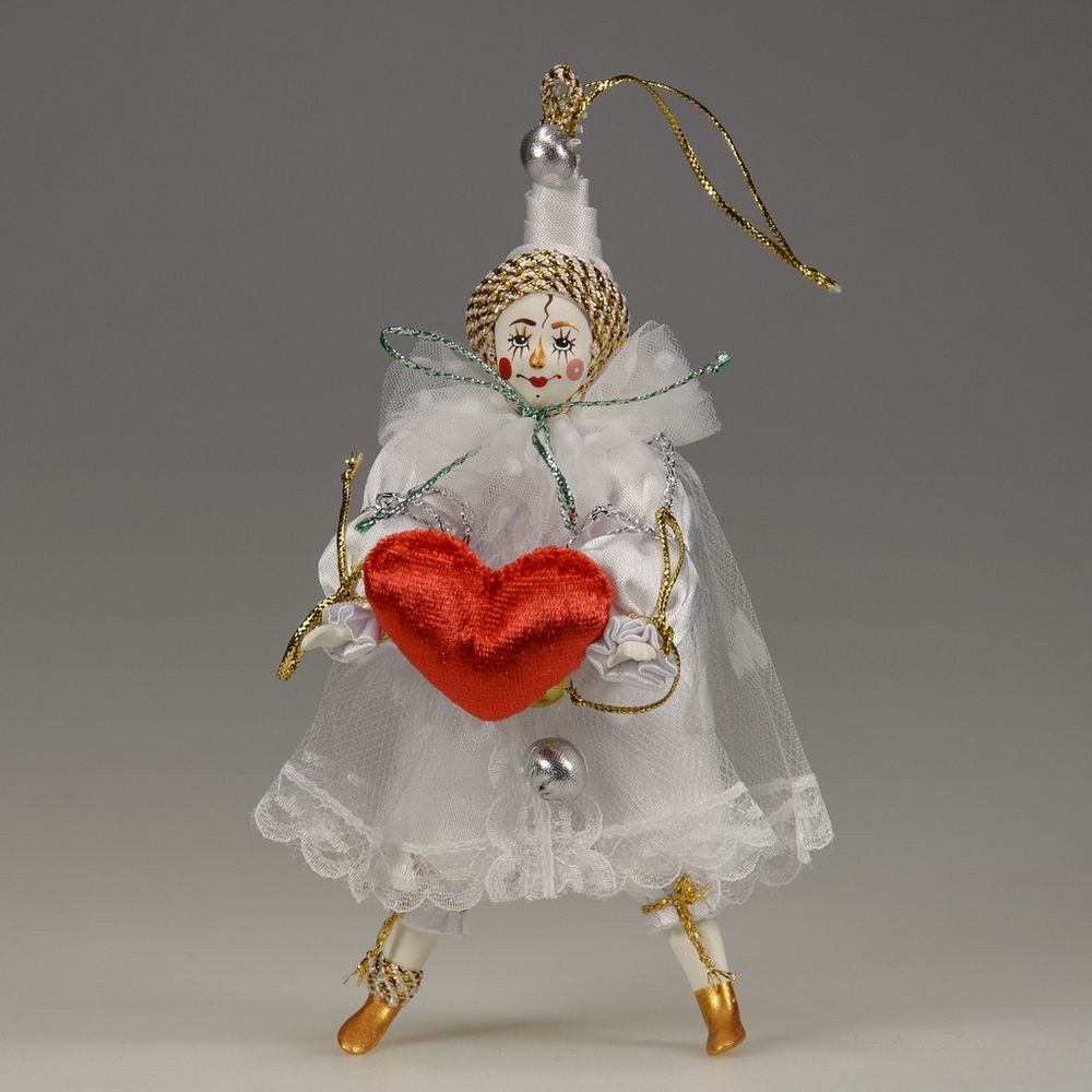 Мы подготовили к этому празднику серию игрушек — Белый клоун с красным бархатным сердечком в руках — одна из них. Станет прекрасным подарком на День святого Валентина и порадует всех влюбленных.