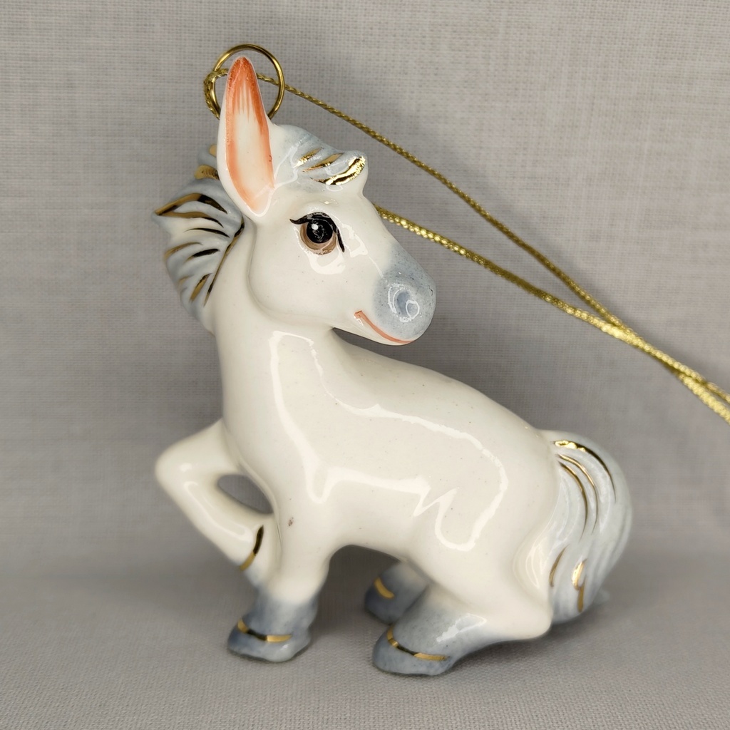Фарфоровая ёлочная игрушка Конёк сказочный. Имеет петельку для подвеса.