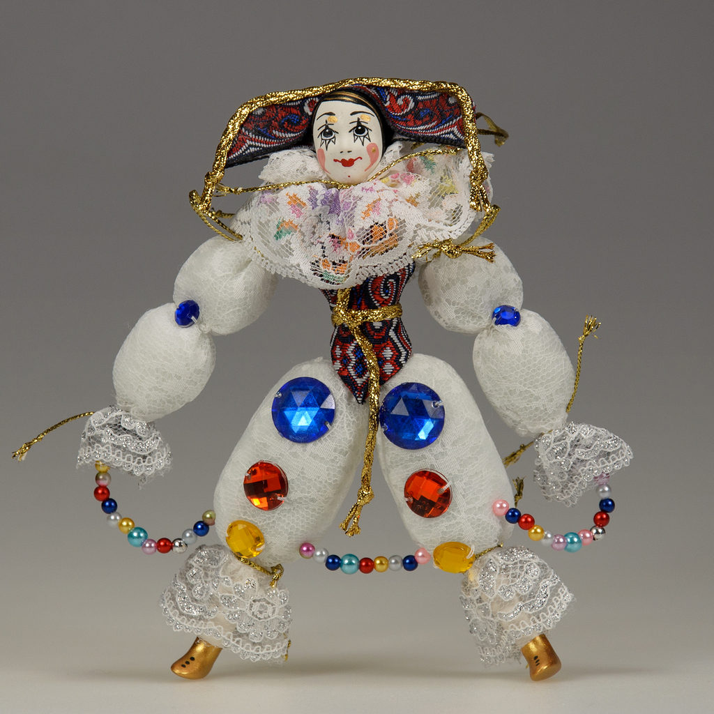 бисквитный фарфор, текстиль, акриловые краски,