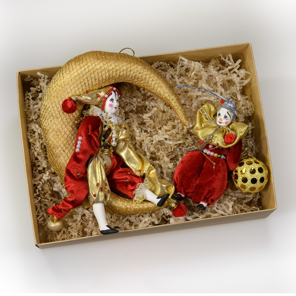 Набор состоит из двух ёлочных игрушек в красной цветовой гамме.