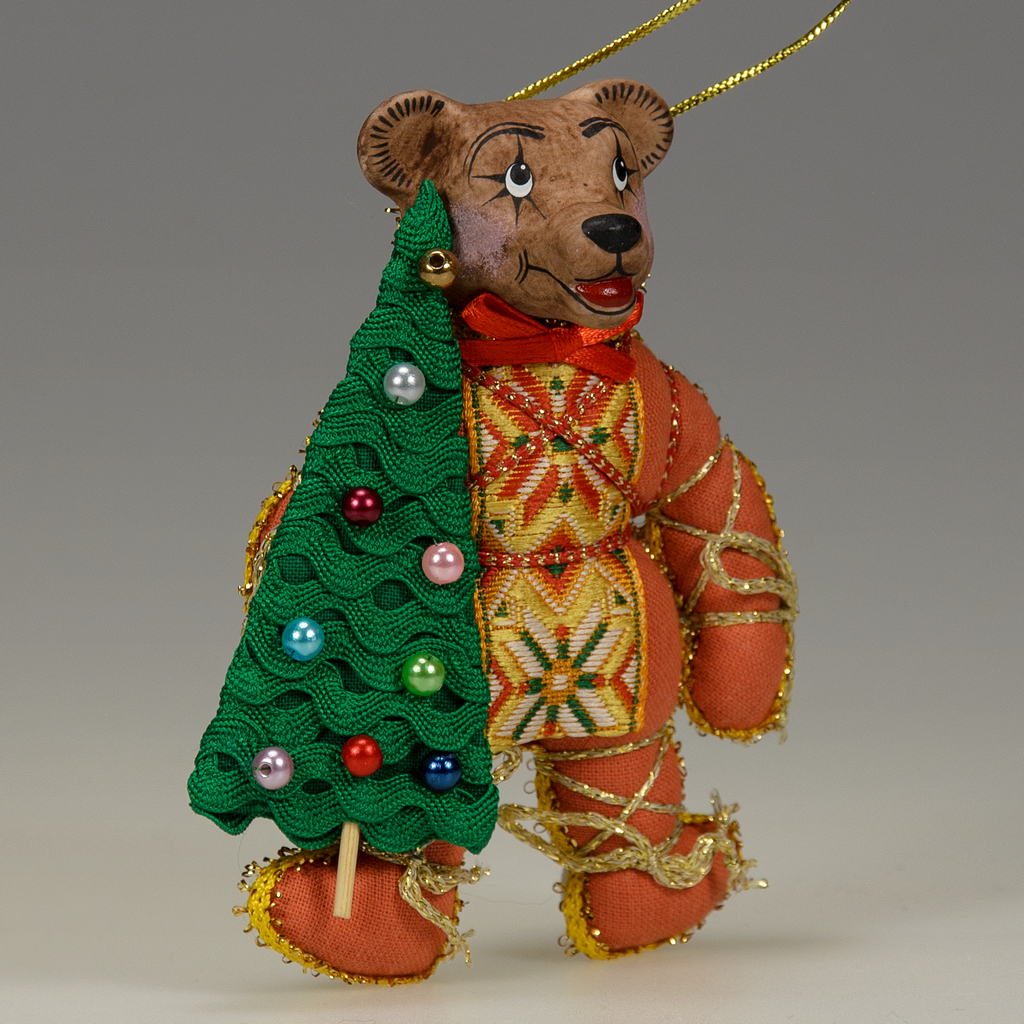 Ёлочная игрушка Медвежонок двухцветный с ёлкой